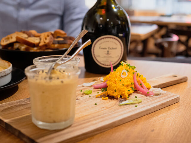 En amoureux du raisin nous sélectionnons rigoureusement nos vins dans l'objectif de proposer des cuvées majoritairement du coin mais aussi de plus loin. Présentant une partie de références labellisées Bio ou Nature, notre carte des vins compte une peu plus de 80 références à découvrir midi et soir.